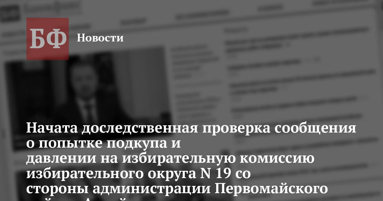 Началась доследственная проверка сообщений о попытке подкупа и ином давлении на избирательную комиссию со стороны должностных лиц администрации