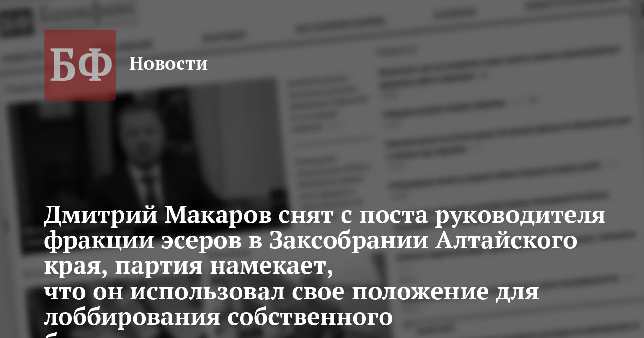 Дмитрия Макарова в последний месяц, подчеркивает в распростраенном заявлении для СМИ пресс-служба алтайских эсеров.