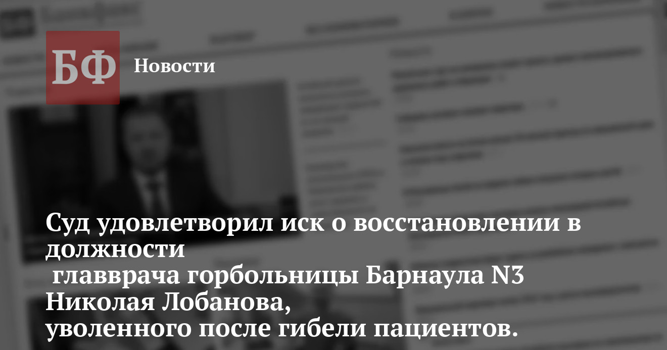 горбольницы N3, уволенного по требованию губернатора Алтайского