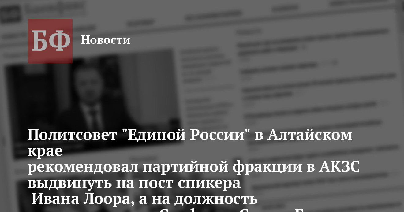 краевом Заксобрании и рекомендовали фракции проголосовать за кандидатуру Ивана Лоора в качестве председателя краевого