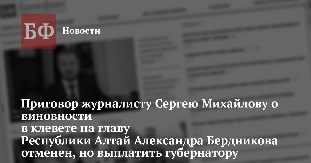 преступления приговор Горно-Алтайского суда от 21 июля о виновности г-на Михайлова в клевете (ч.2 ст. 129 УК РФ) на губернатора. По обвинению в оскорблении и разжигании