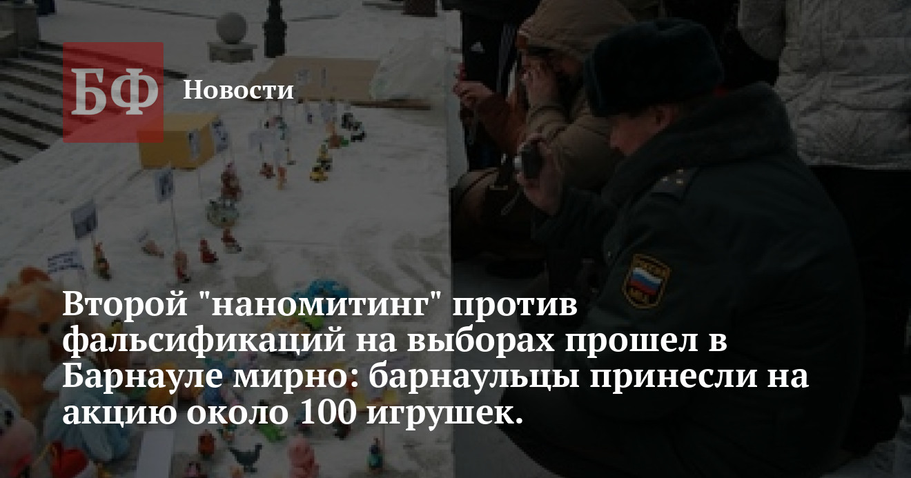 Второй «наномитинг» против фальсификаций на выборах прошел в Барнауле мирно: барнаульцы принесли на акцию около 100 игрушек.