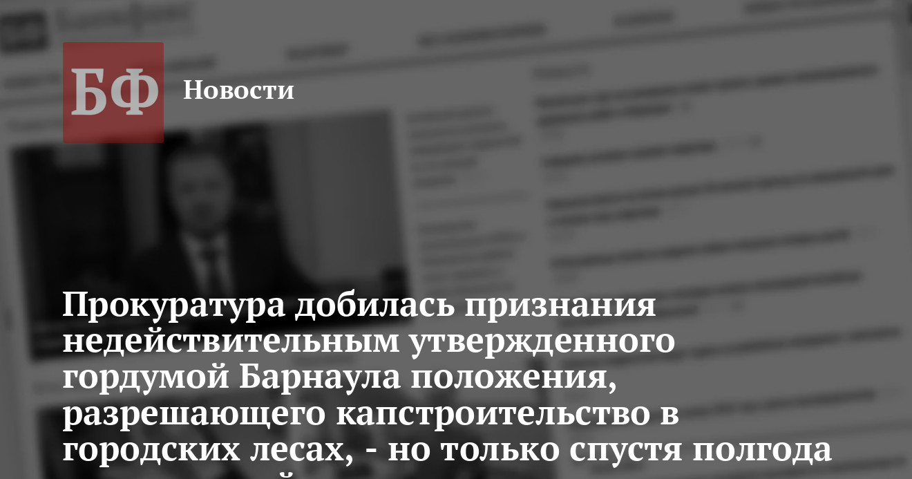 Барнаула, касающееся болезненного вопроса капстроительства в городских лесах, принятое гордумой 3 июня 2011 года, признано судом
