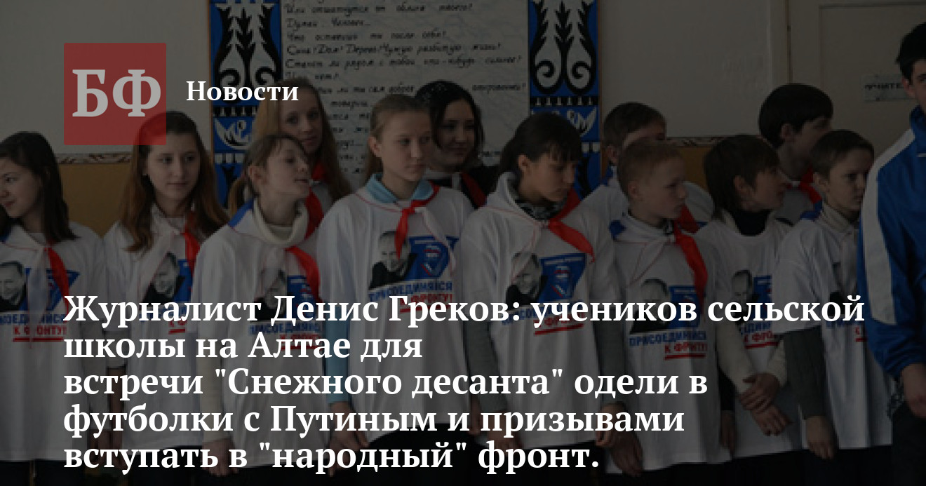 — Школьников села Бураново Калманского района Алтайского края 28 января приодели в «фирменные» футболки с изображением Путина и призывом вступать в «народный фронт» для встречи участников