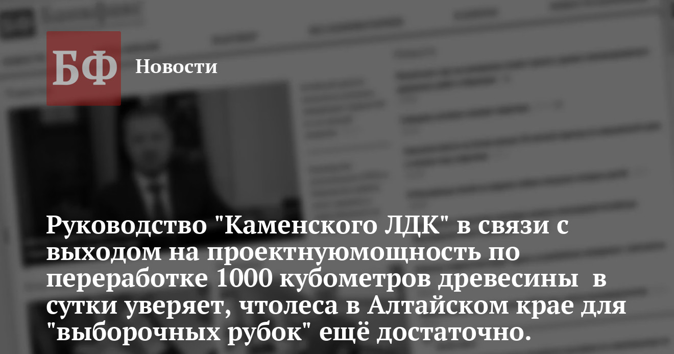 На проектную мощность переработки 1000 кубометров леса в сутки «Каменский ЛДК», входящий в структуру близкого к ряду руководителей администрации края холдинга «Алтайлес», вышел в июле 2011 года. За отчетный период здесь переработано 125 тысяч кубометров круглого леса, сообщает сайт «Каменской народной газеты».