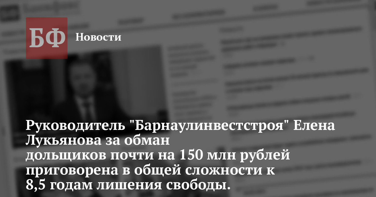 края. Ранее Лукьянова, а также её супруг уже были осуждены за обман дольщиков ООО «Сибстройсервис» на 8 лет лишения свободы