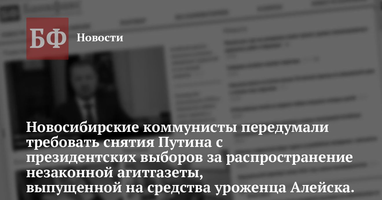 Владимира Путина — за нарушение избирательного законодательства в его пользу. Поводом для этого послужила распространенная по Новосибирску и Новосибирской области 450-тысячным тиражом