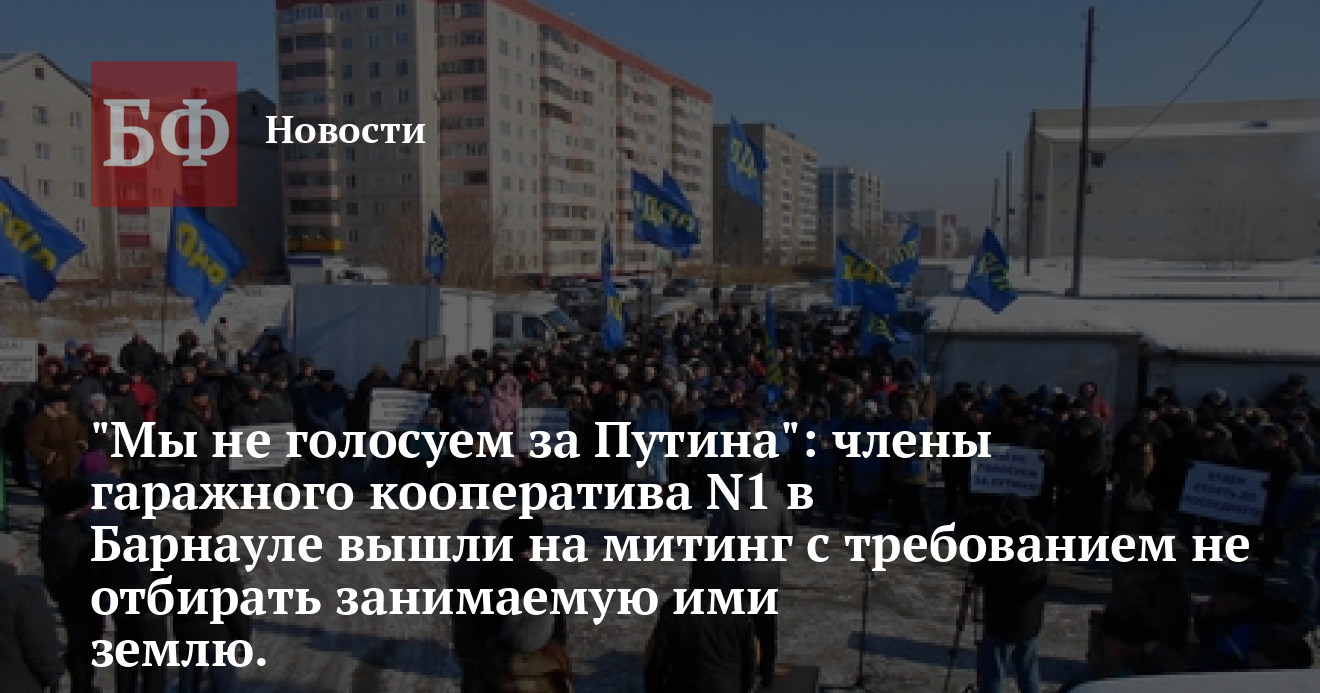 «Мы не голосуем за Путина»: члены гаражного кооператива N1 в Барнауле вышли на митинг с требованием не отбирать занимаемую ими