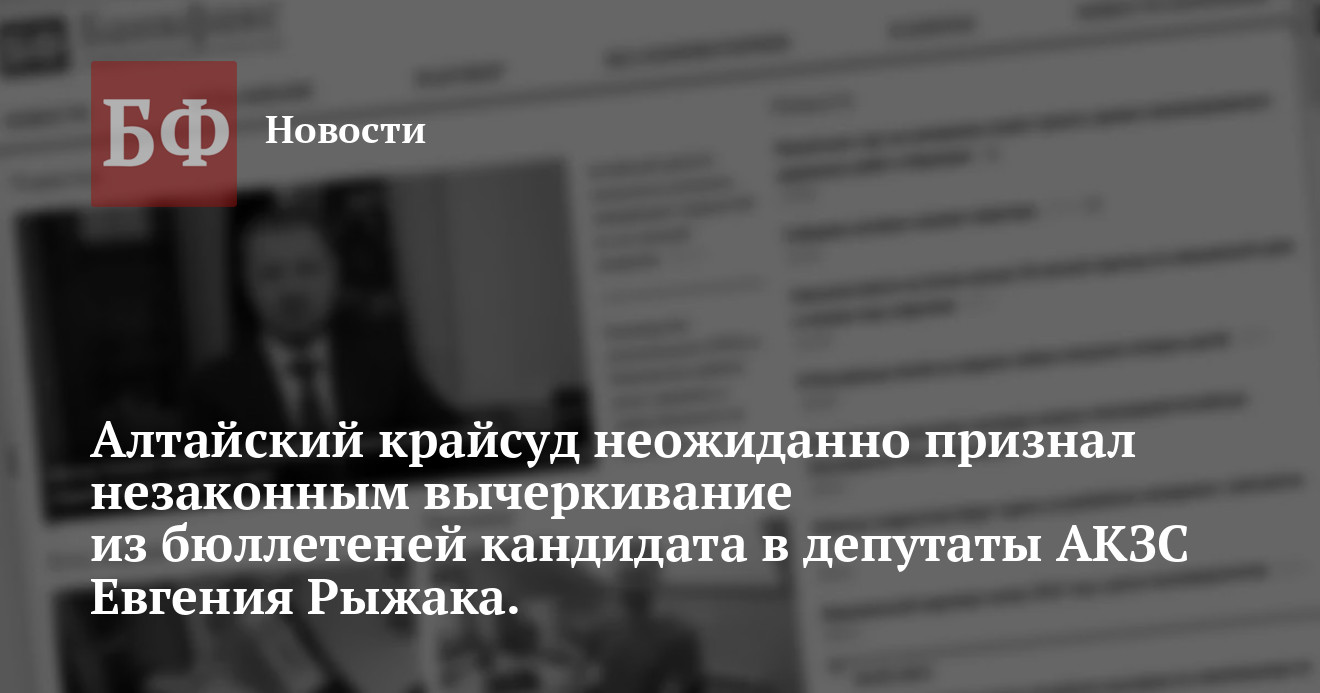 Евгений Рыжак подал заявление в Алтайский краевой суд с требованием отменить решение окружной избирательной комиссии N19