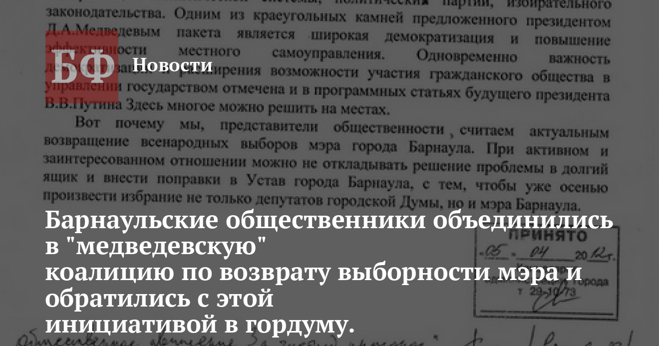 У нас есть время и при желании дума могла бы внести в ближайшие месяцы изменения в Устав и назначить выборы мэра во время осенних выборов гордумы. Единственное препятствие, с которым мы столкнулись при подготовке обращения, это то, что в обществе наблюдается некая «шизофрения», которую выразил один из экологов: «Мало ли что сказал президент, но ведь команды-то нет».