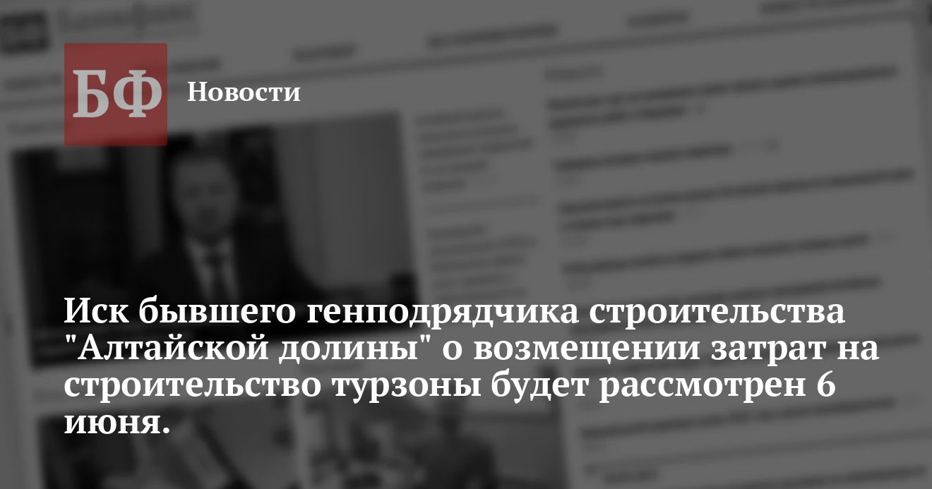 о возмещении затрат на стройматериалы в ходе выполнения контракта на строительство турзоны «Алтайская долина», назначенное на 16 мая,