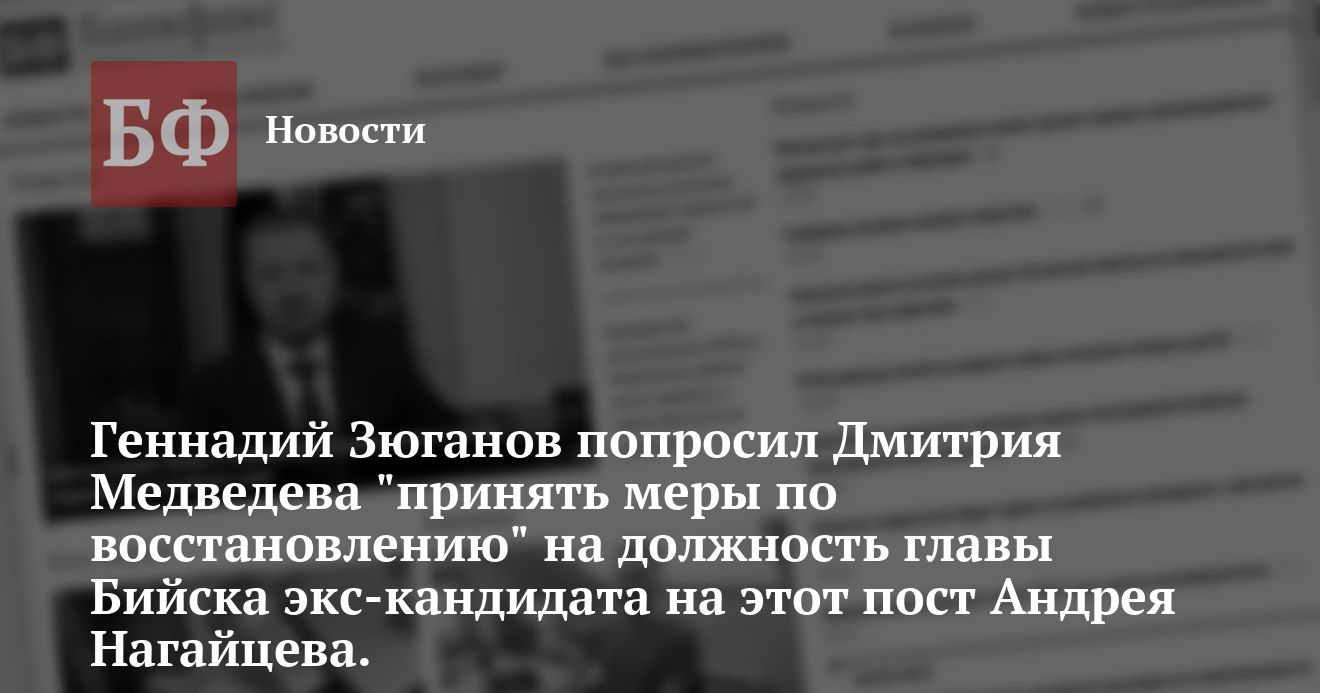 мэра Бийска, сейчас — депутата Бийской гордумы Андрея Нагайцева и «принять меры по восстановлению» его на должность главы города.