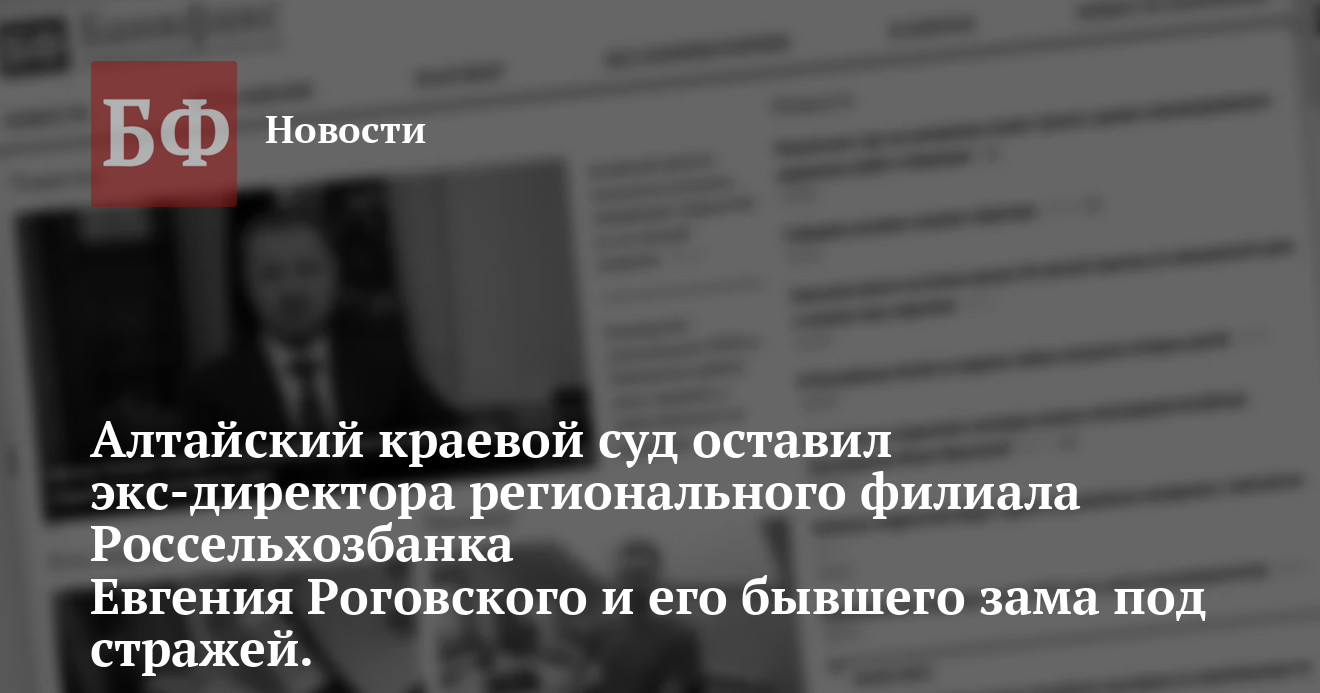 на 60 суток. С этого же времени директором филиала Россельхозбанка в Алтайском крае является