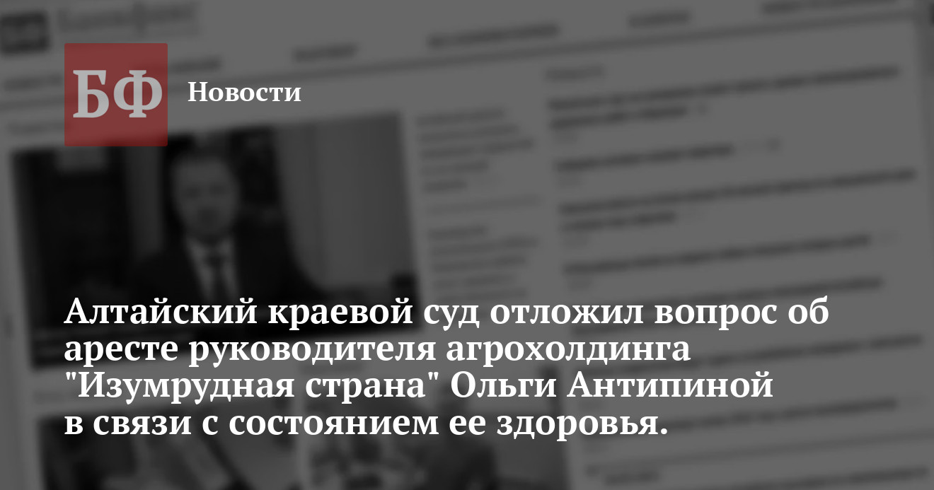 руководителю ассоциации «Изумрудная страна» Ольге Антипиной. Об этом ИА «Банкфакс» сообщила ее адвокат