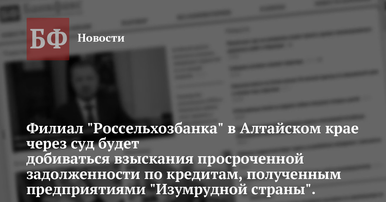 филиалом «Россельхозбанка» в отношении предприятий агрохолдинга «Изумрудная страна», и размер всех исковых требований пока уточняются.