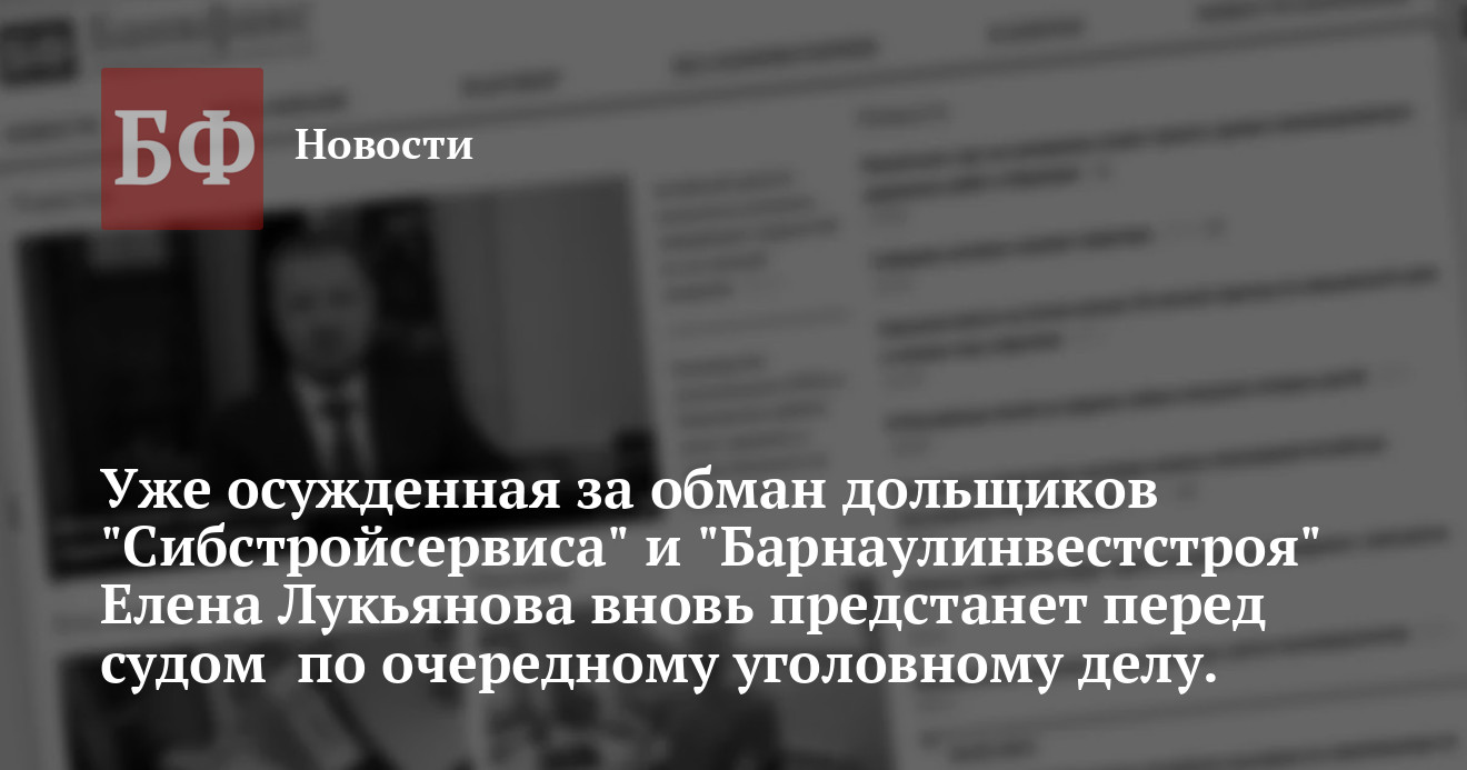 Елена Лукьянова уже отбывает наказание по другому уголовному делу. В феврале 2011 года за обман 27 дольщиков «Сибстройсервиса»
