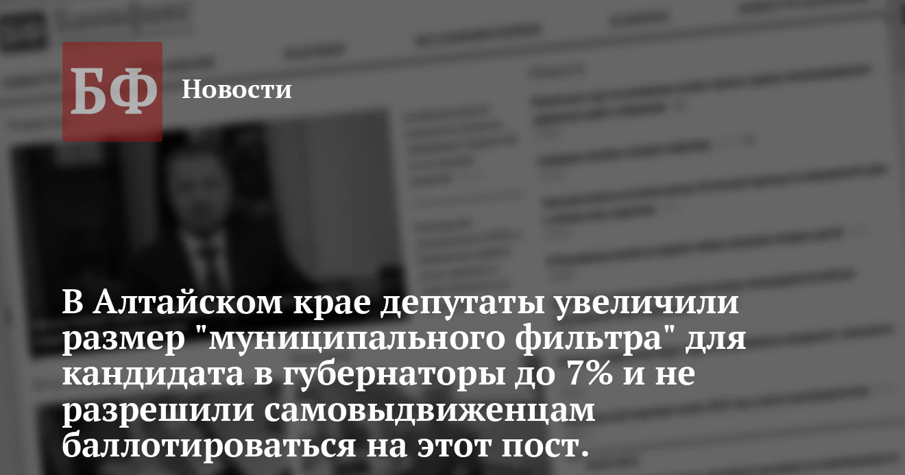 Как уже сообщалось, 28 июня на сессии краевого парламента депутаты рассмотрели поправки в краевой «Кодекс о выборах:. «, предполагающие увеличение количества подписей муниципальных депутатов, необходимых для регистрации кандидата в губернаторы (так называемого «муниципального фильтра») с 5% до 7%.