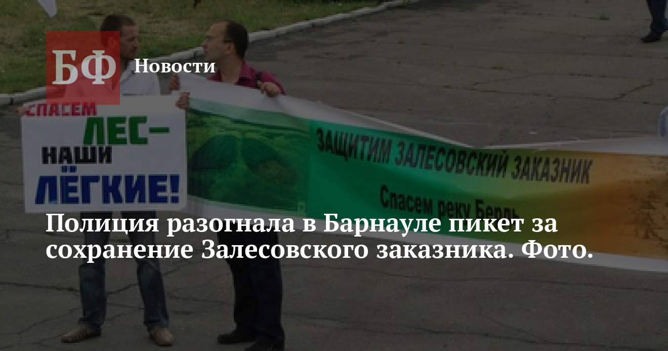 В связи с этим сотрудник полиции почти сразу же предложил организатору пикета Ольге Фотиевой проехать в отделение для составления протокола о нарушении. Как призналась сама Фотиева, это была не первая попытка препятствовать проведению акции. Перед этим ей неоднократно «звонила представитель администрации Барнаула г-жа Герасименко от имени Сергея Локтева с требованием отказаться от проведения согласованного пикета. Аргументировалось это тем, что по словам первого зама губернатора, в настоящее время в Алтайском крае никто не строит планов по добыче полезных ископаемых на территории Залесовского заказника. Но мы-то понимаем, что основную часть денег они там заработают не на добыче, а на вырубке леса, поэтому от проведения акции отказываться не стали».