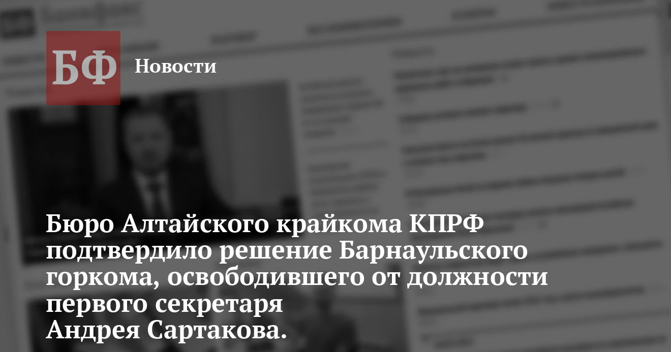 Барнаульского горкома от 9 июля, освободившего от должности первого секретаря горкома Андрея Сартакова. Подтверждены