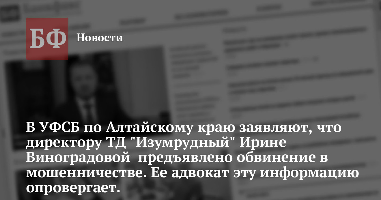 Напомним, Ирину Виноградову, директора торгового дома «Изумрудный», задержали 24 июля прямо в одном из барнаульских