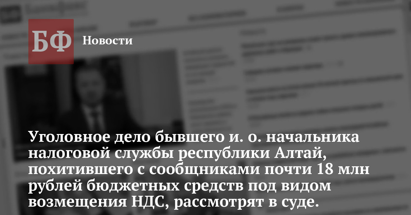 В соответствии с ч. 4. ст. 159 УК РФ бывшему и. о. начальника налоговой службы республики Алтай грозит лишение свободы на срок до десяти лет.