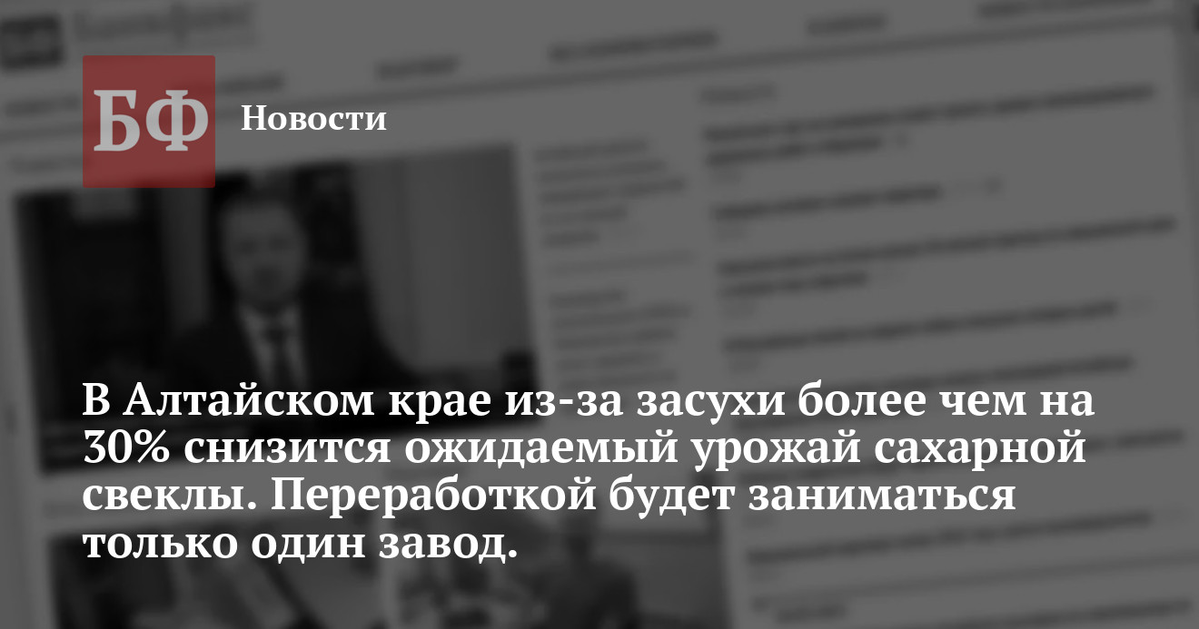 «На сахарном заводе в Бийске в 2011 году проведен значительный объем работ по техническому перевооружению, завершение реконструкции позволит перерабатывать до 4,5 тысяч тонн сахарной свеклы в сутки. Рассчитываем, что это предприятие будет работать», — также заявила г-жа Зеленина. Какие конкретные меры предполагается