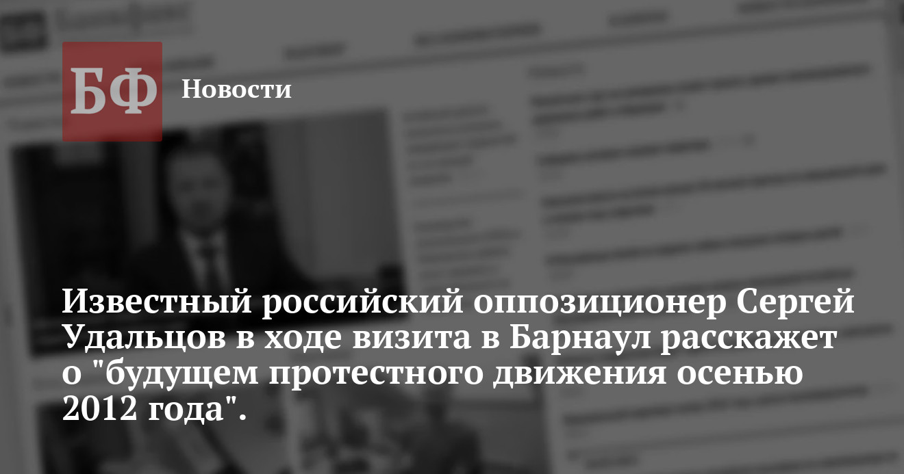 приедет в Барнаул на встречу с местными гражданскими активистами и выступит с докладом «Будущее протестного движения осенью 2012 года». Организаторы встречи — барнаульское гражданское движение «декабристы».
