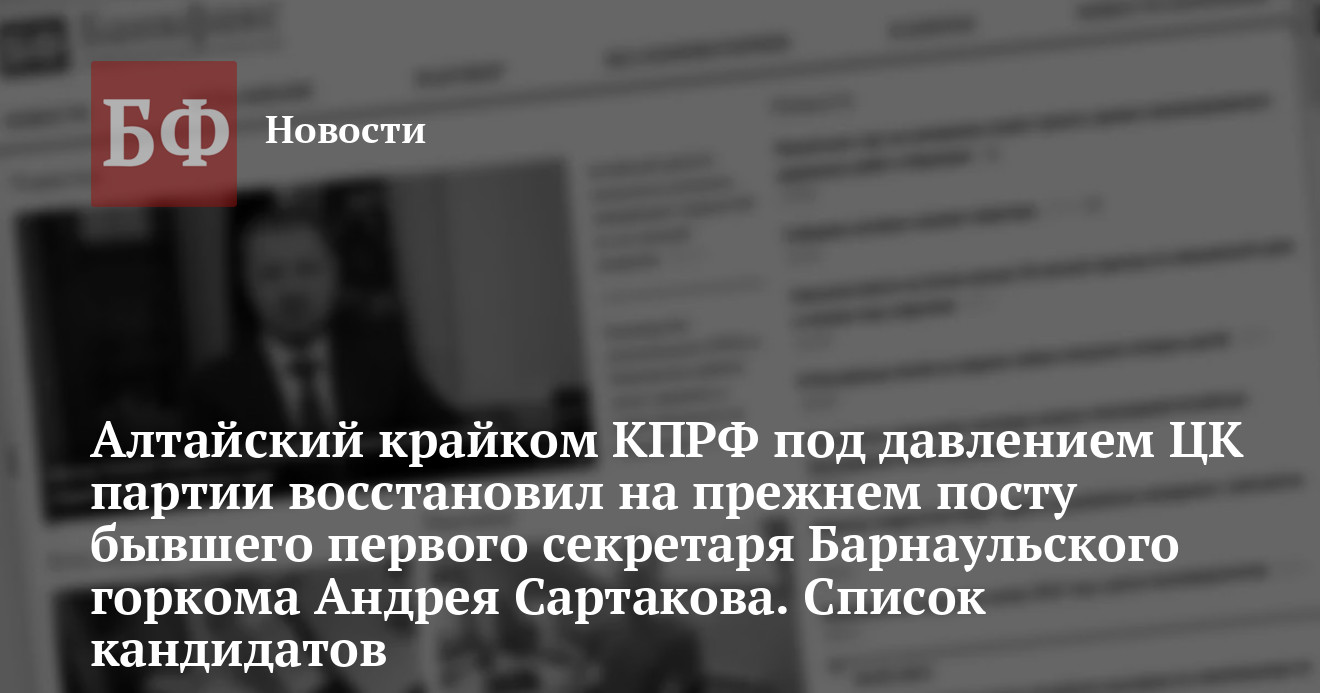 10 августа экс-первый секретарь Барнаульского горкома КПРФ Андрей Сартаков решением