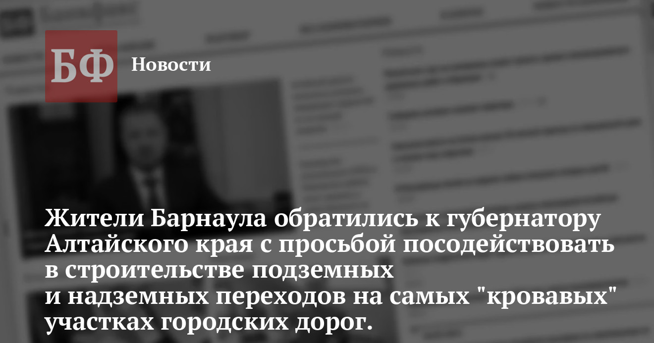 1. В кратчайшие сроки утвердить план строительства подземных и надземных переходов на дорогах Барнаула с наиболее оживленным движением.