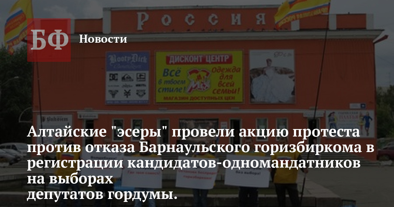 Алтайские справедливороссы во главе с руководителем Центра взаимодействия с институтами гражданского общества при реготделении партии Юрием Мишениным 17 августа провели пикет против решения Барнаульского горизбиркома, не зарегистрировавшего их список кандидатов-одномандатников на выборы депутатов гордумы.