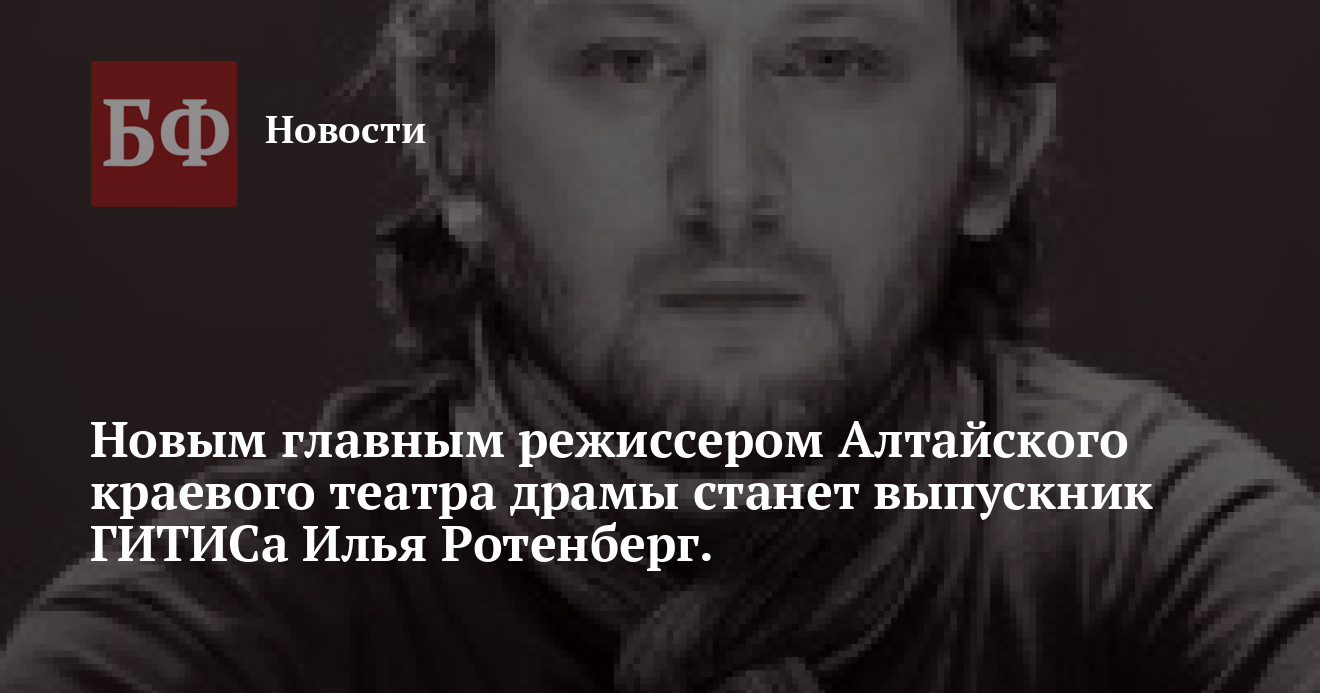 Новым главным режиссером Алтайского краевого театра драмы станет 32-летний Илья Ротенберг, выпускник экспериментального курса Каменьковича и Крымова в ГИТИСе,