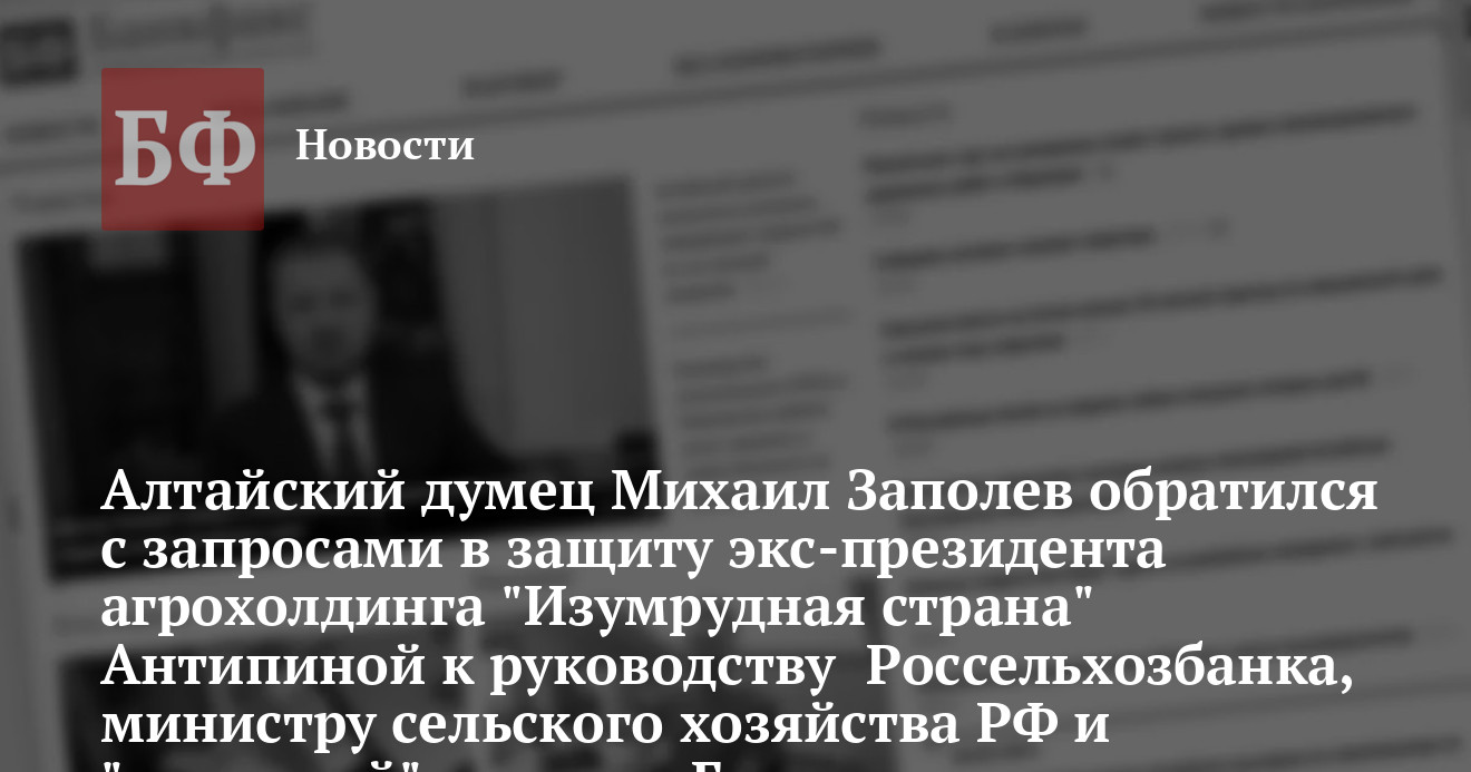 Депутат Госдумы от Алтайского края, коммунист Михаил Заполев обратился к председателю правления Россельхозбанка Дмитрию Патрушеву, в министерство сельского