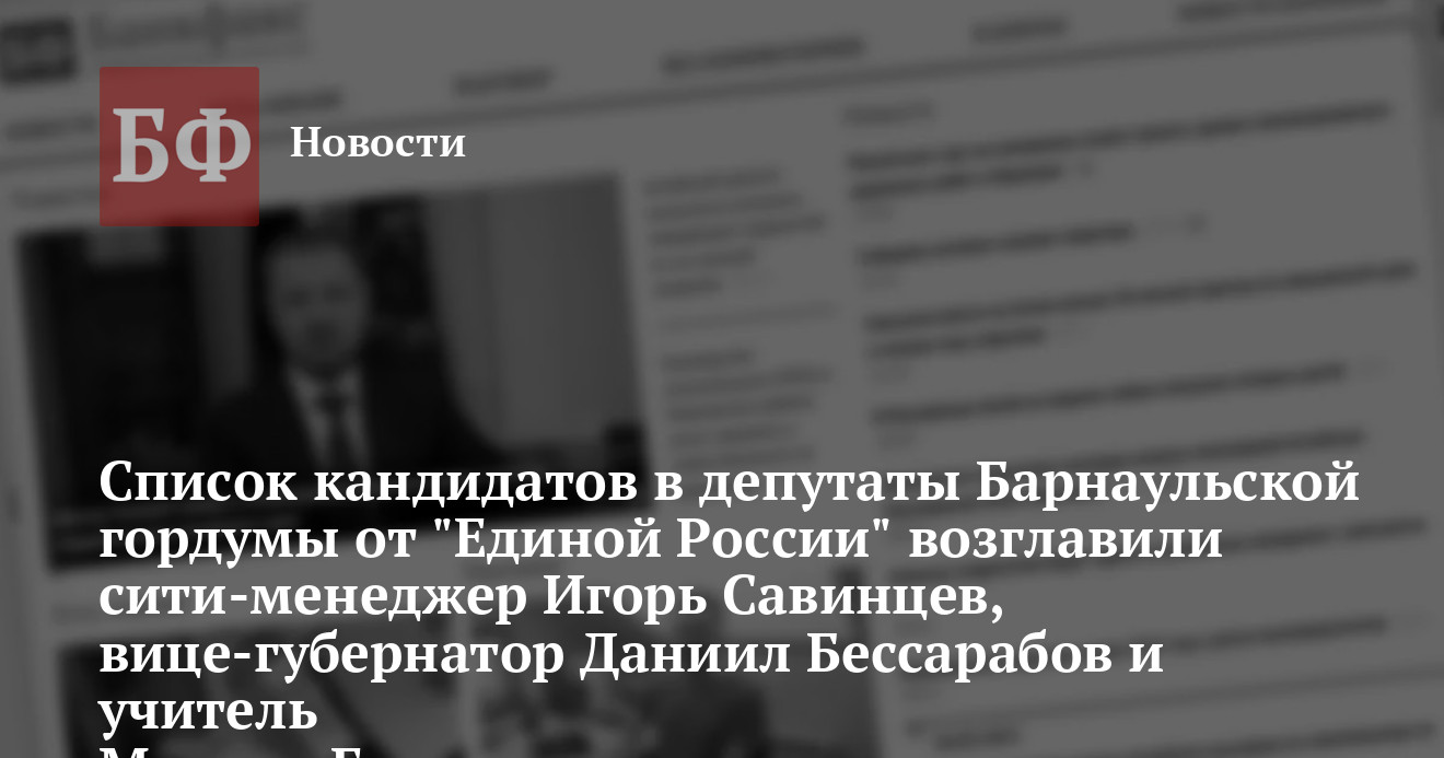 Общегородскую часть партийного списка кандидатов в депутаты Барнаульской гордумы от «Единой России» составили глава администрации Барнаула Игорь Савинцев,