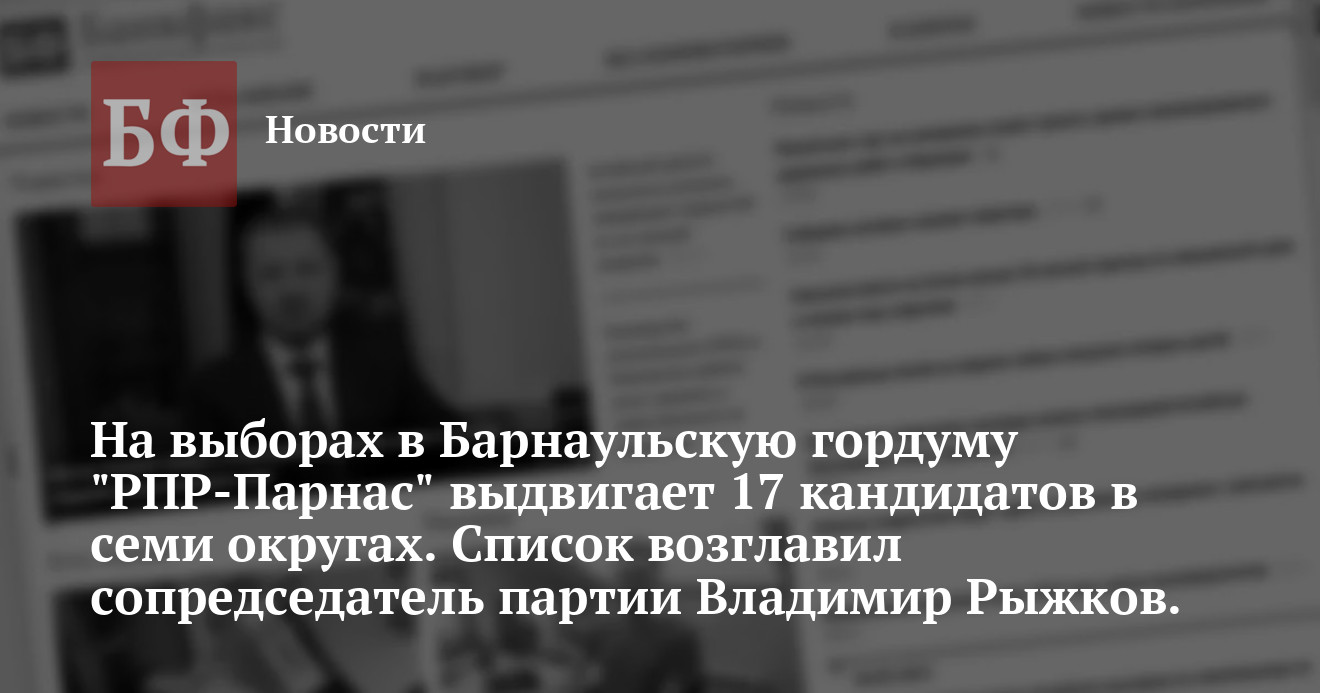 По одномандатному округу N 4 от «РПР-Парнас» будет баллотироваться гендиректор «Алтайской ярмарки» Андрей Олишевский, по округу N 5 — «декабристка» Ольга Фотиева,