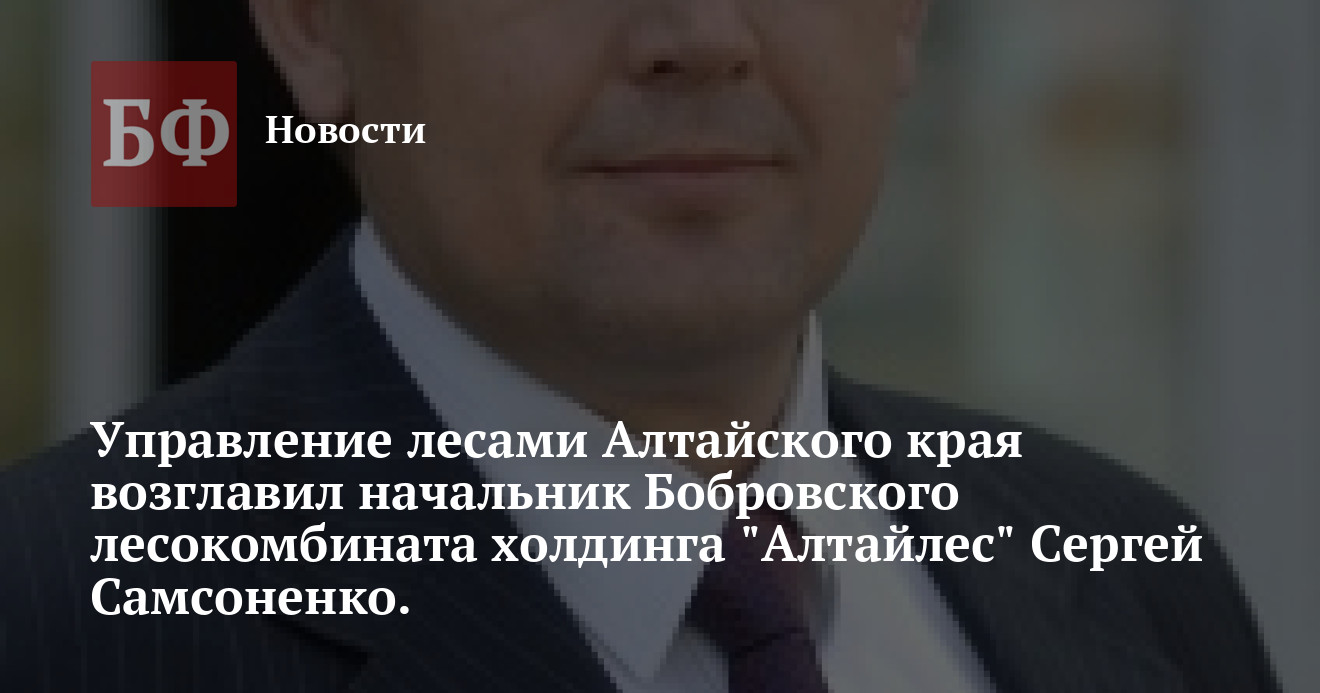До назначения на должность начальника краевого управления лесами г-н Самсоненко возглавлял ООО «Бобровский лесокомбинат» Лесной холдинговой компании «Алтайлес».