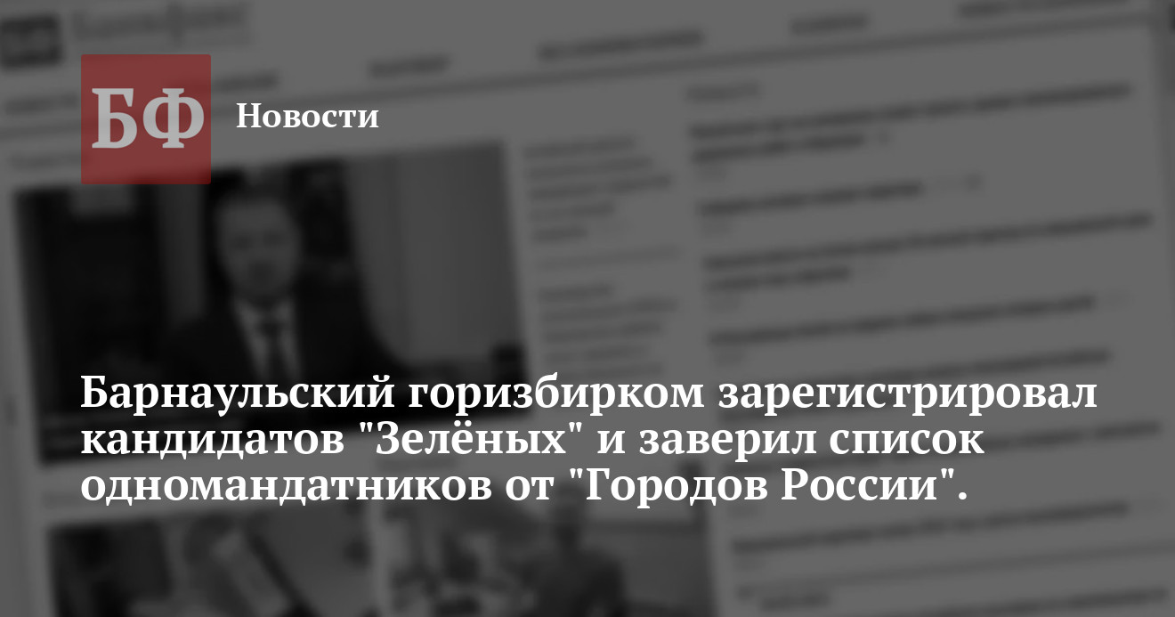 Барнаульский горизбирком зарегистрировал кандидатов, выдвинутых по партспискам партии «Зелёных» и заверил список кандидатов от партии «Города России»