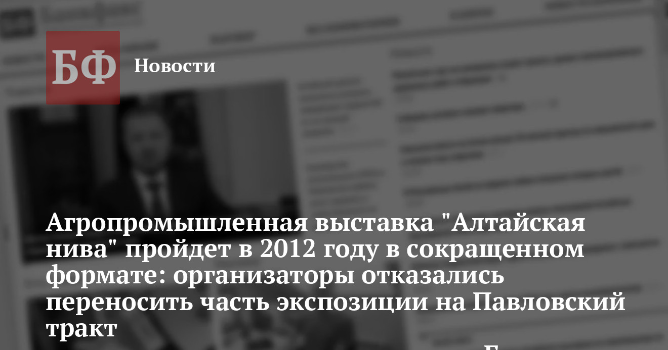 к экспонентам сельскохозяйственной выставки. «Администрациями края и города Барнаула перекрытие проспекта Социалистический на время проведения выставки не согласовано. О таком решении мы, к сожалению, узнали только 31 августа. В связи с этим в 2012 году „Алтайская Нива“ будет проходить в следующем формате: сохранятся