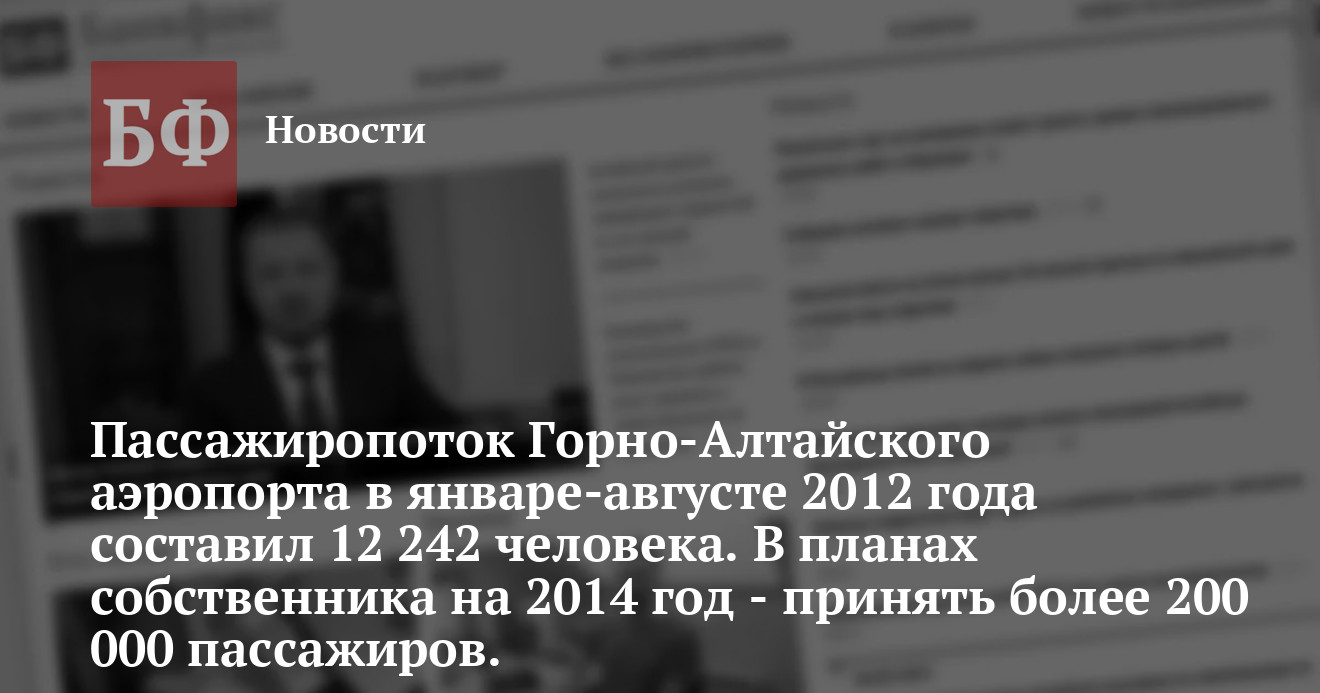 По результатам восьми месяцев 2012 года пассажиропоток аэропорта «Горно-Алтайск» увеличился в 4,3 раза по сравнению с аналогичным