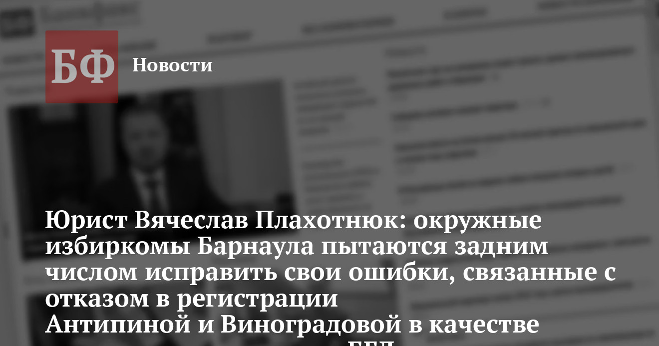 Юрист Вячеслав Плахотнюк: окружные избиркомы Барнаула пытаются задним числом исправить свои ошибки, связанные с отказом в регистрации Антипиной и Виноградовой в качестве кандидатов в депутаты БГД.