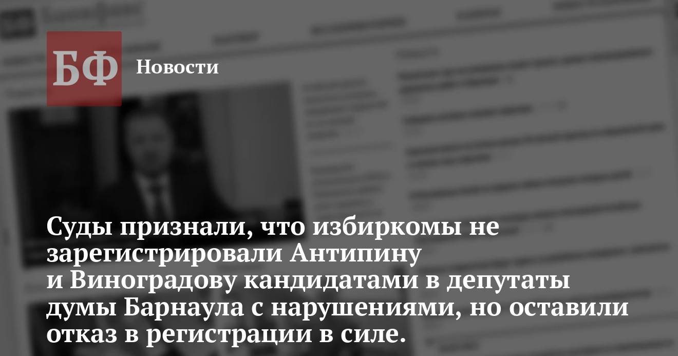 окружных избирательных комиссий в регистрации их в качестве кандидатов на выборах в гордуму Барнаула. Об этом сообщил и.о.