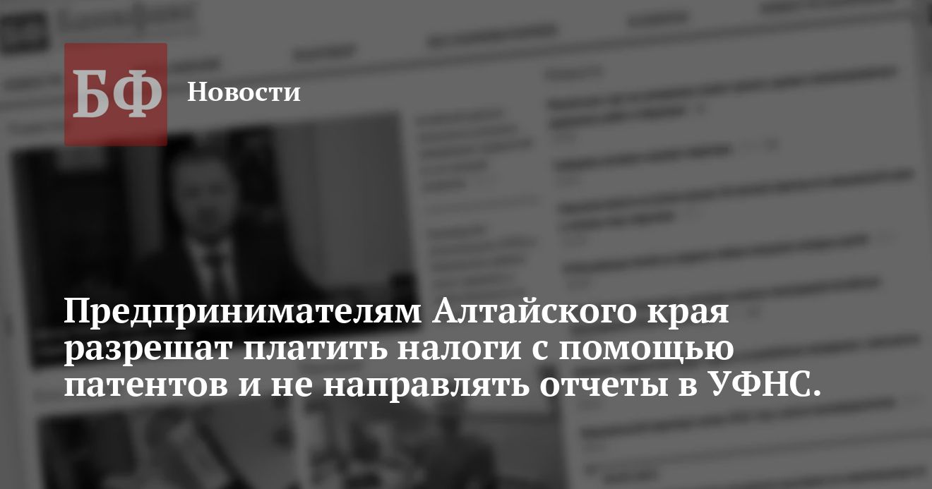 Как сообщается на сайте УФНС по Алтайскому краю, согласно законопроекту, патентной системой