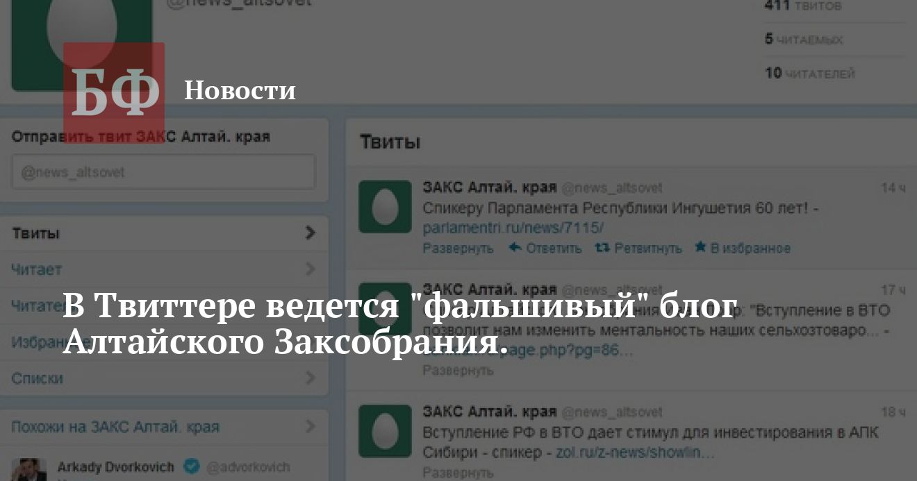 В Твиттере ведется «фальшивый» блог Алтайского Заксобрания.