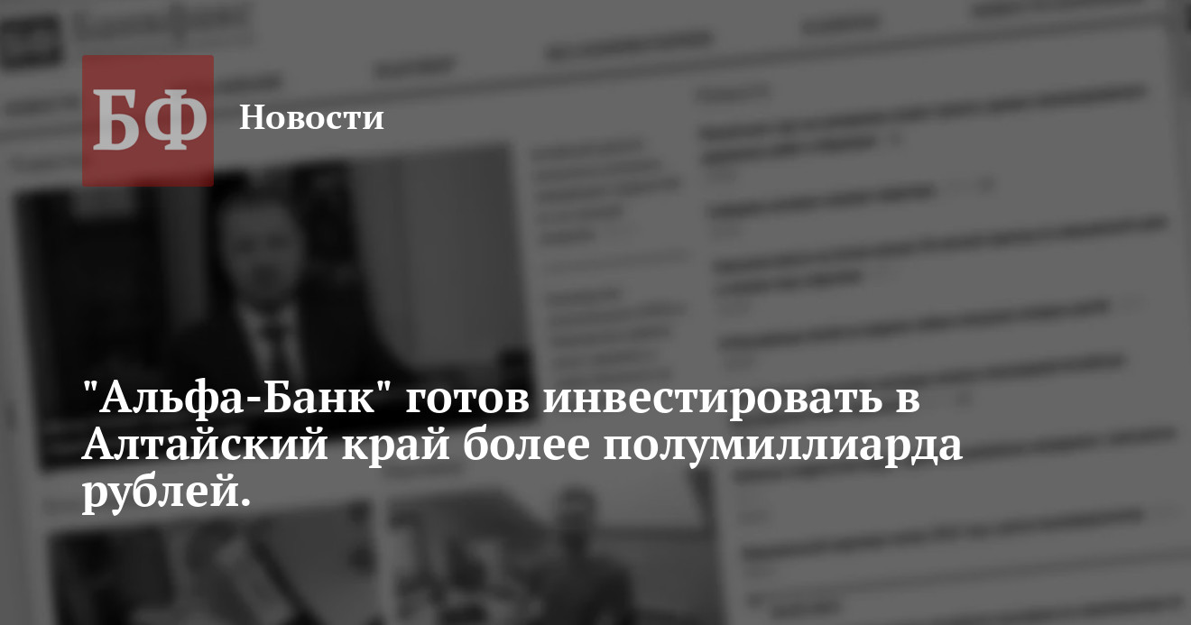 Представители руководства «Альфа-Банка» обсудили с губернатором Алтайского края Александром Карлиным и вице-губернатором Михаилом Щетининым перспективу расширения влияния банка в регионе и заявили, что готовы инвестировать на эти цели более полумиллиарда рублей.