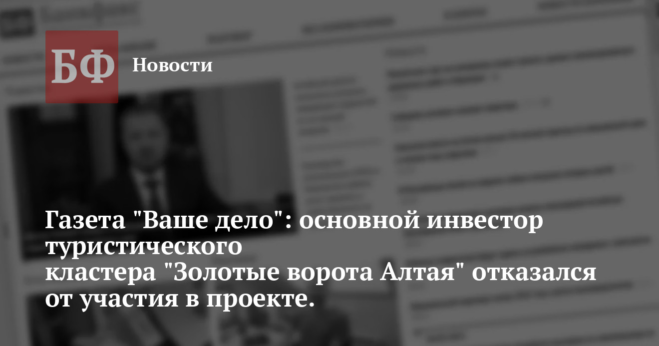 Компания «АТК «Золотые ворота», ранее заявлявшая о намерении вложить в создание туристического кластера «Золотые ворота Алтая» 1 млрд. рублей, не будет участвовать в данном проекте. Об этом 5 ноября сообщил сайт ИД «Алтапресс» со ссылкой на одно из своих изданий — газету «Ваше дело».