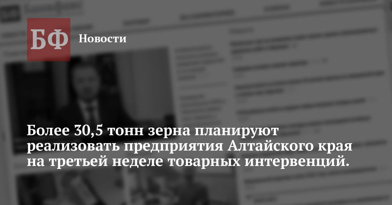интервенций. Ожидается, что в ходе торгов 6 и 7 ноября алтайские базисы реализуют 30 тысяч 510 тонн