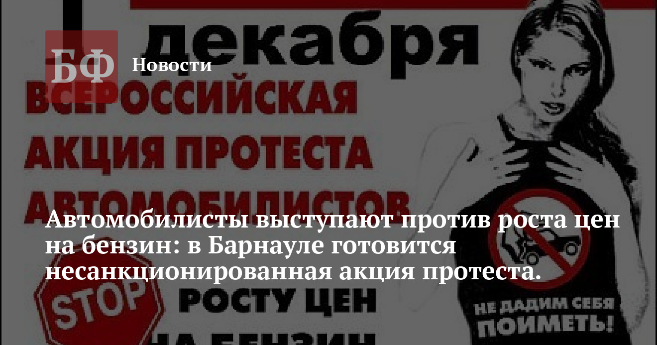 На форуме drom.ru и в группе в соцсети odnoklassniki.ru активно обсуждается проведение Всероссийской акции протеста автомобилистов 1 декабря «Против роста цен на бензин». Активисты из Барнаула предлагают организовать движение многочисленной колонны автомобилей по проспекту Ленина.