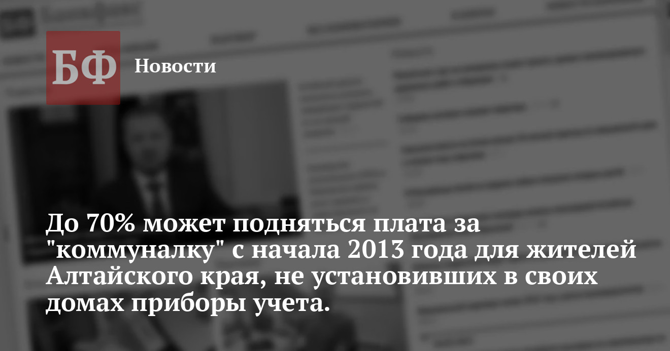 По его словам, за январь 2013 года жители Алтайского края получат квитанции нового образца. Уже установившие счетчики собственники жилья никаких изменений на себе не почувствуют. Тарифы на коммунальные услуги не изменятся до 1 июля 2013, но в среднем примерно на 30% вырастут нормативы потребления, по которым рассчитывают плату для не имеющих счетчиков жильцов.