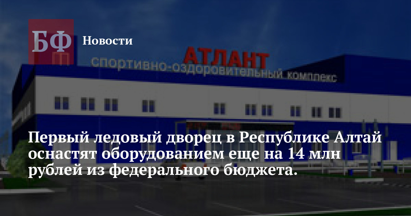 По распоряжению правительства РФ в 2013 году Республике Алтай выделят 14 315 000 рублей для оснащения спортивным оборудованием первого ледового дворца — физкультурно-оздоровительного комплекса «Атлант» в Майме, сообщает интернет-портал республиканского правительства.