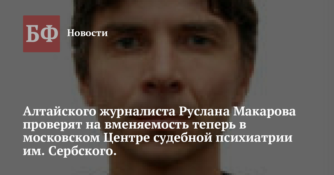 Как отмечает сайт «Листка», журналист издания будет этапирован в Государственный научный центр социальной и судебной психиатрии имени В.П. Сербского в Москве. Возможно, будет решаться вопрос о так называемом спецэтапировании Руслана Макарова на самолете. Сейчас же он находится в СИЗО Кызыл-Озека Республики Алтай.