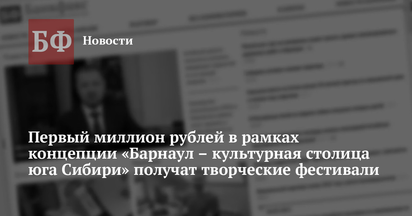 Впервые в 2013 году будет выделен 1 млн рублей на проведение фестивалей, предусмотренных концепцией «Барнаул — культурная столица юга Сибири», сообщает сайт профильного управления администрации Алтайского края.